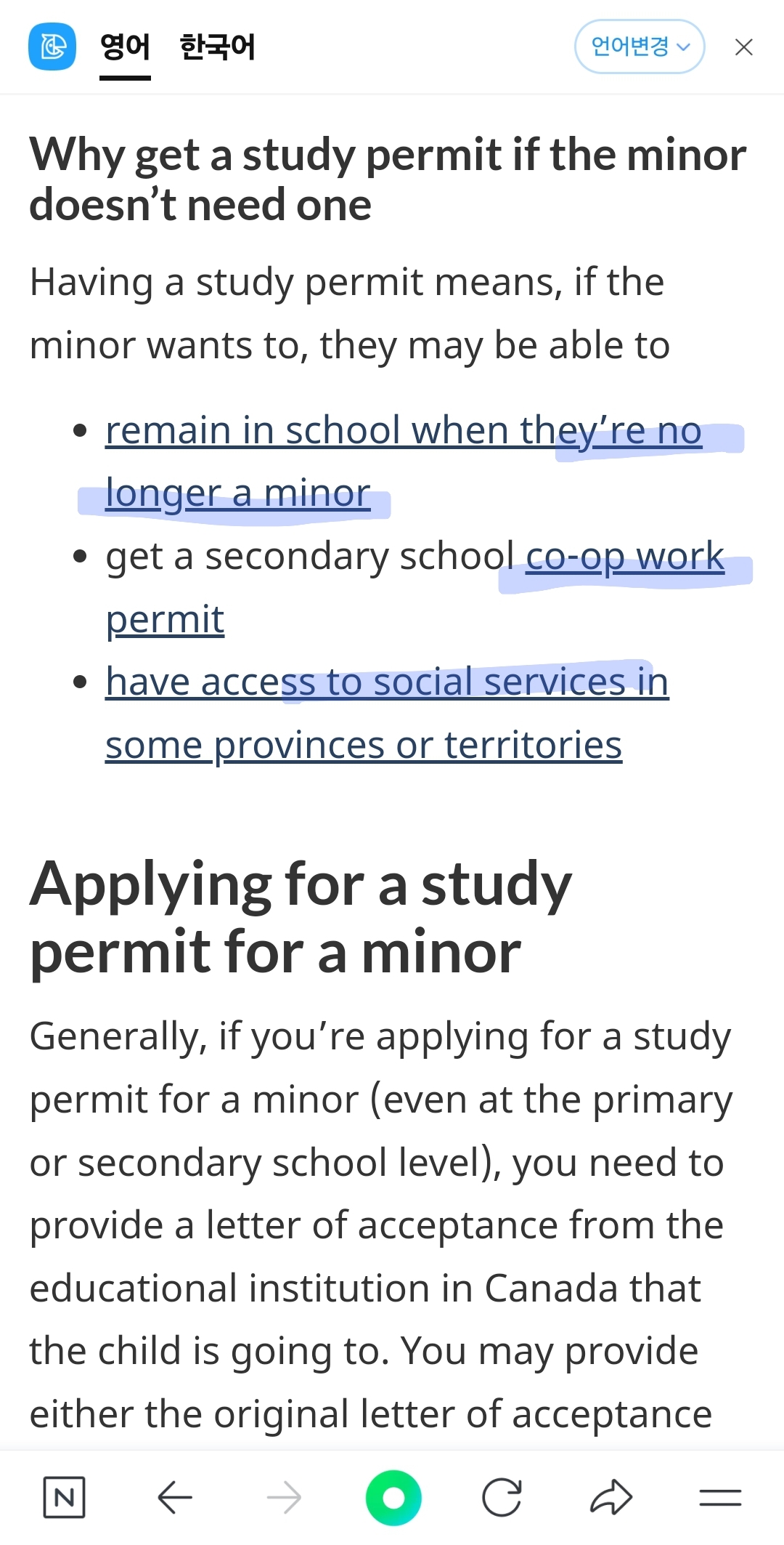 그럼 워크퍼밋/스터디퍼밋 있는 부모의 자녀는 비지터 레코드, 여권에 있는 도장, eta 같은게 있으면 무상 교육이 가능하다는 결론인데 그래도 스터디 퍼밋을 권한다는 결론. 아이들의 비자 만기가 나보다 짧더라도 큰 문제는 되지 않을 것 같아 우선은 안심이 된다.혹시나 스터디 퍼밋 신청을 원한다면