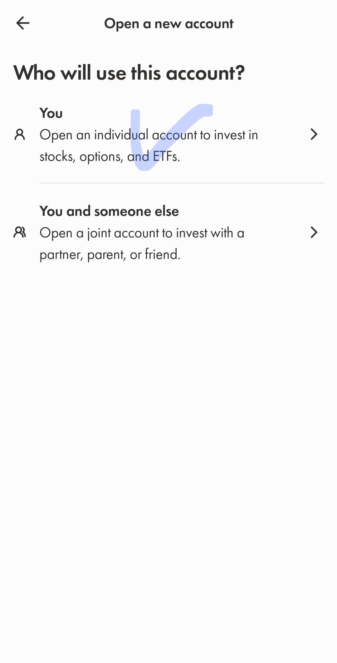계좌 신규개설과 타사 계좌 이전 옵션이 나온다.