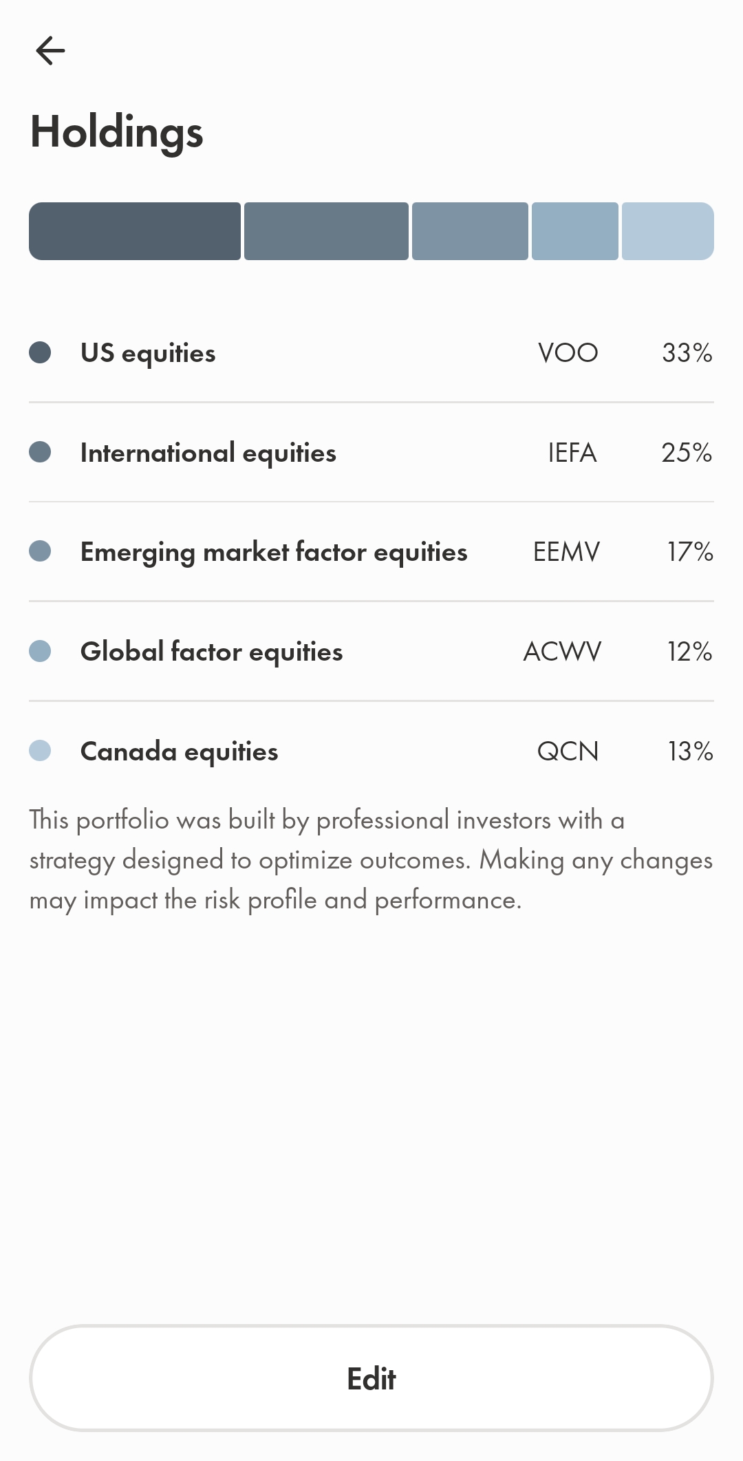 3. Wealthsimple portfolio investment